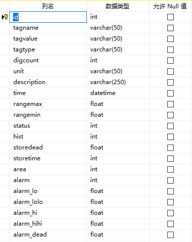 tagvalue:当前值,该字段可以使用varchar类型或者real类型 - 必须